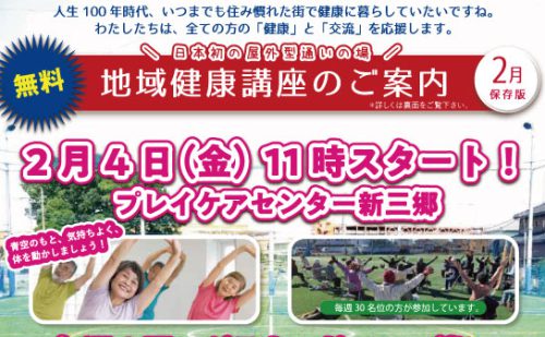 お知らせ 2022年3月の通いの場日程 人生100年時代、いつまでも住み慣れた街で健康に暮らしていたいですね。 わたしたちは、全ての「健康」と「交流」を応援します。日本初・屋外型通いの場/地域健康講座のご案内普段はこどもたち、学生・クラブチームなどがサッカーやフットサルで使用して... 2022.02.28 お知らせ